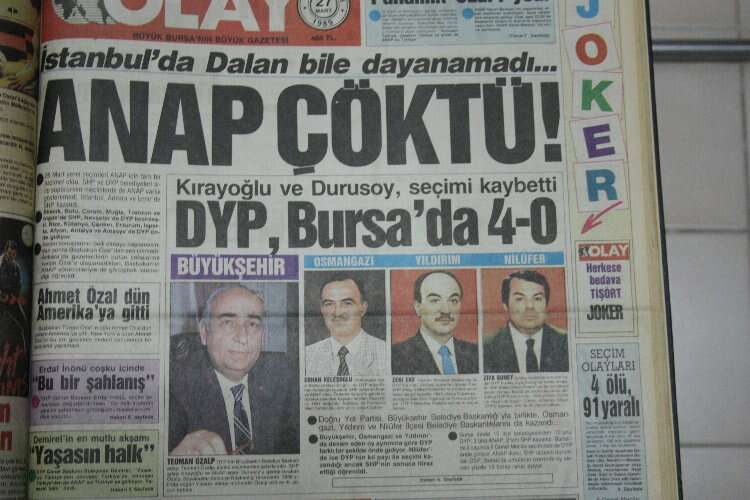 Turhan Tayan ( DYP Bursa İl Başkanı): “Bu seçime biz çok iyi hazırlanmıştık. 1988’de İl Başkanı olunca 8 kişilik çok değerli arkadaşlardan oluşan bir Yerel Sorunlar Komitesi kurduk. Bu Komite sorunları tespit etmek, çözümlerini üretmek üzere 10 ay sürekli çalıştı. Bursa’da ilk defa kentin her yöresinde anket çalışması yaptık.”