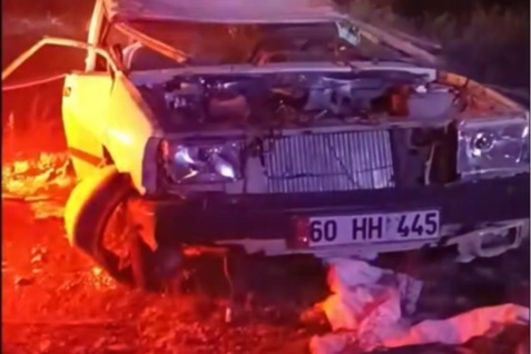Tokat-Amasya kara yolunda sürücüsünün direksiyon hakimiyetini kaybettiği otomobilin takla attığı anlar araç içi kamerasına yansıdı.