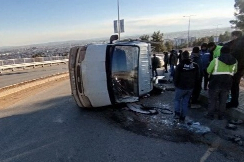 Adıyaman’da sürücüsünün direksiyon hakimiyetini kaybetmesi sonucu virajı alamayan kamyonet devrildi.