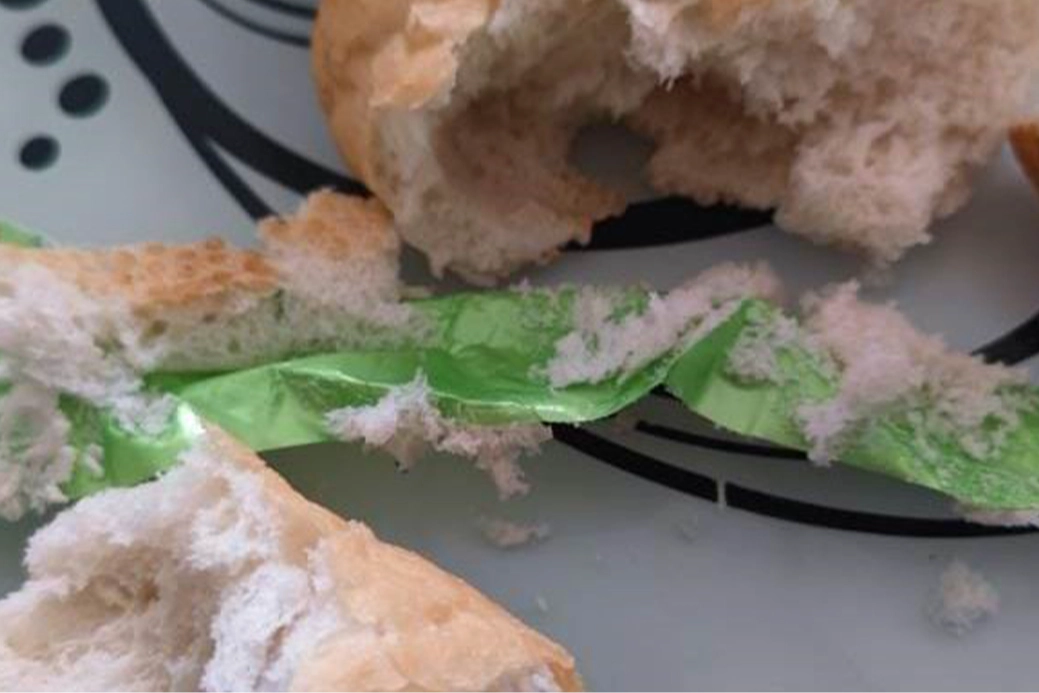 Olay, Doğukent Mahallesi’nde yaşandı. Sabah saatlerinde dışarı çıkan bir vatandaş, ekmek almak için markete girdi. Marketten ekmek ve çeşitli ihtiyaçlarını alan vatandaş daha sonra eve gelip kahvaltı hazırlıkları yaptı. Marketten aldığı ekmekle kahvaltısını yapmaya hazırlanan vatandaş, ekmeği kesince neye uğradığını şaşırdı. Ekmeğin içinden naylon çıktığını gören vatandaş, durumu markettekilere iletti. Ekmeği ayırdığında hayatını şokunu yaşadığını belirten vatandaş, ’’Sabah ekmek aldım, sonra gelip kahvaltı yapmaya başladım. Ekmeği kesince içinden naylon çıktı. İnsan hayatı bu kadar ucuz olmamalı. Ekmek gibi hijyenin en üst düzeyde olması gereken imalathanelerde tedbirlerin daha sıkı uygulanması gerekir’’ dedi.