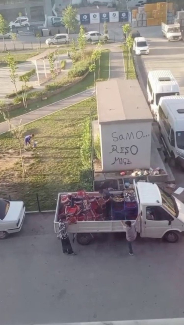 Kalan çilekleri vatandaşlara dağıtmak yerine çöp konteynerine döküp israf eden pazarcıyı gören vatandaşlar o anları kayda aldı.